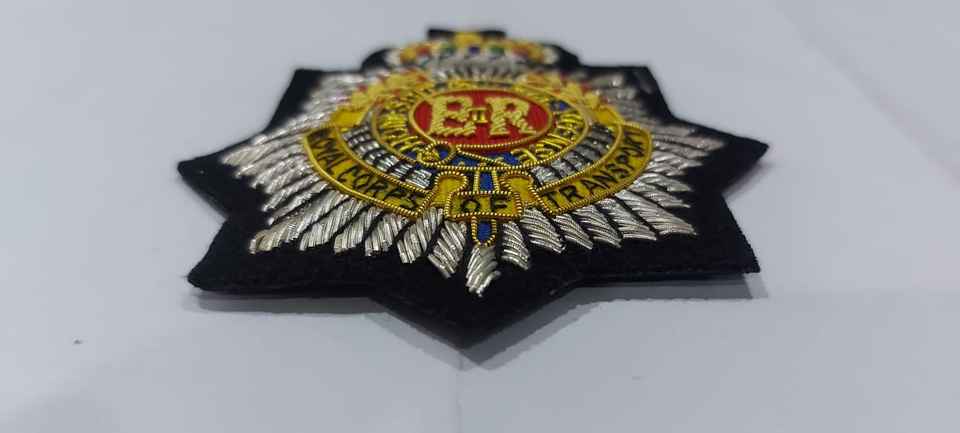 Etiquetas elegantes y duraderas para prendas de vestir de poliéster, parches bordados a mano con emblemas del Reino Unido con insignias técnicas tejidas de alambre de lingotes
