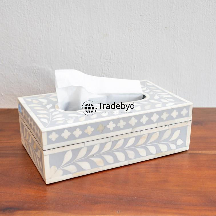 Elegante Porta Pañuelos Decorativo Hecho a Mano con Incrustaciones de Hueso, Ecológico y Personalizado, Decoración Premium para el Hogar, Tradebyd
