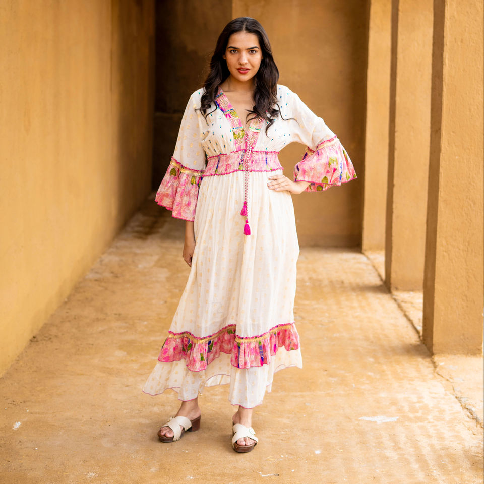 Elemento de moda:Color caramelo, Asimétrica, Estampado floral