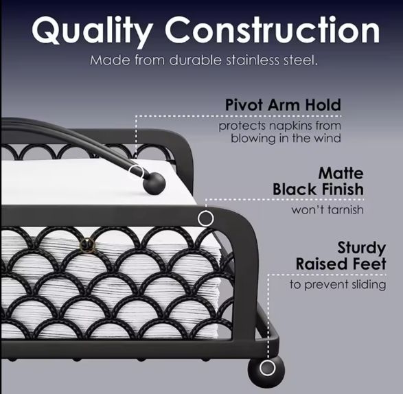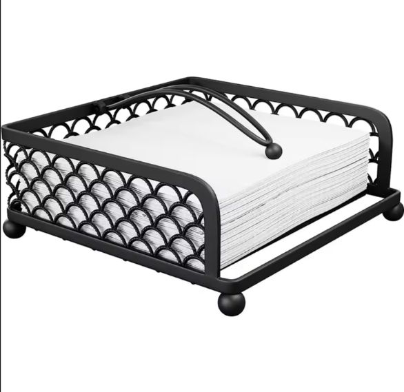 Servilletero de papel plano elegante con brazo dispensador-Servilleteros dorados para mesa, cocina, encimeras y mesas al aire libre negro