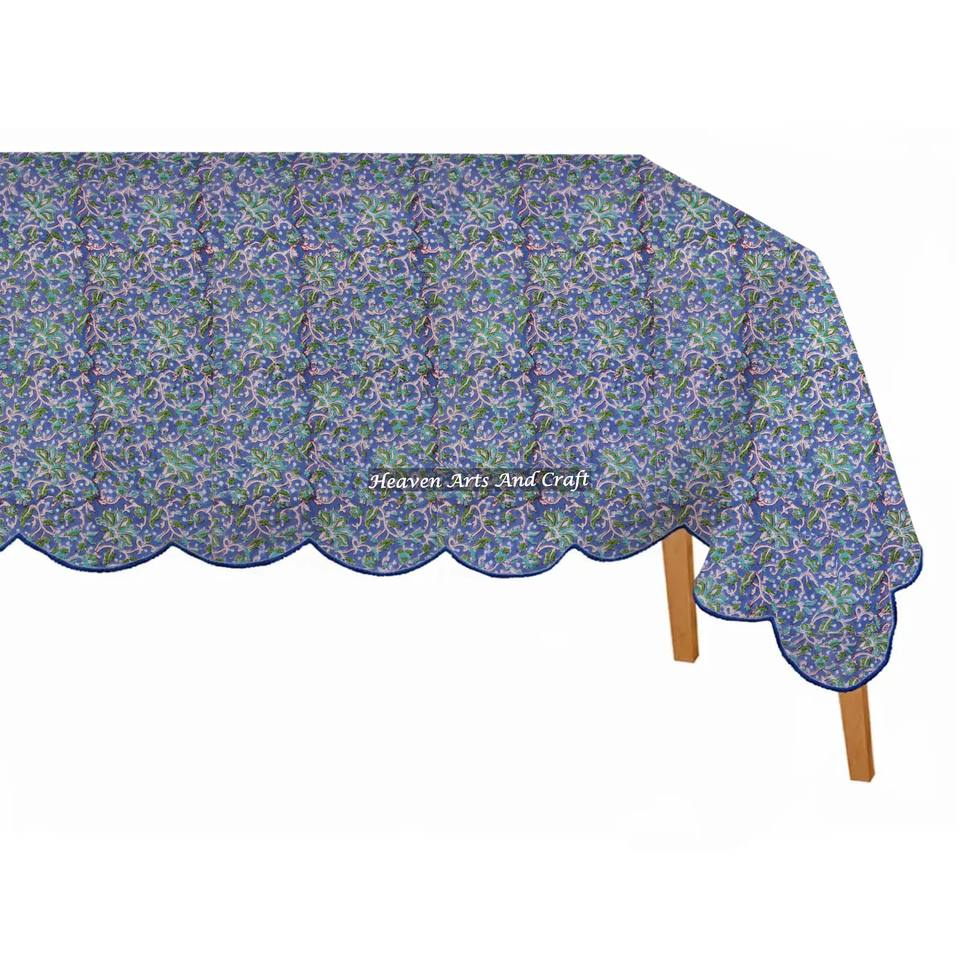 Mantel Rectangular Elegante con Estampado Floral a Mano, Estilo Rústico Indio de Algodón Puro para Bodas y Uso en Exteriores