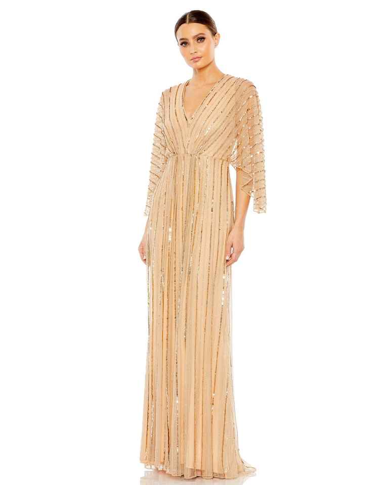 Elegante Vestido de Noche de Tul con Estampado Floral, Diseño Original del Fabricante, Decoración con Lentejuelas y Cuentas, Escote en V sin Mangas, Largo hasta el Suelo, para Fiestas
