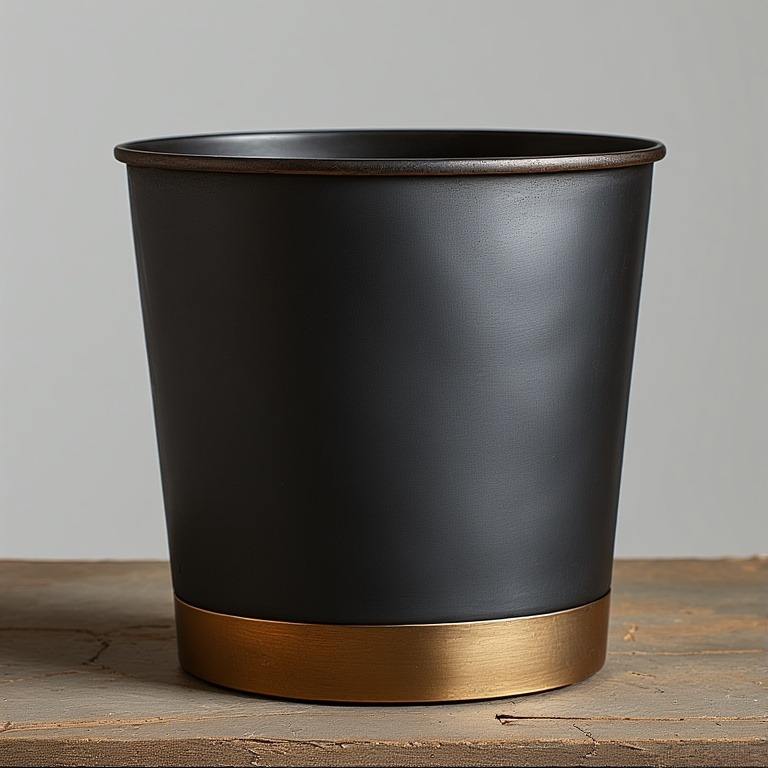 Elegante cubo de basura de acero galvanizado con tapa de acabado negro liso Diseñado para interiores decorativos de uso público funcional