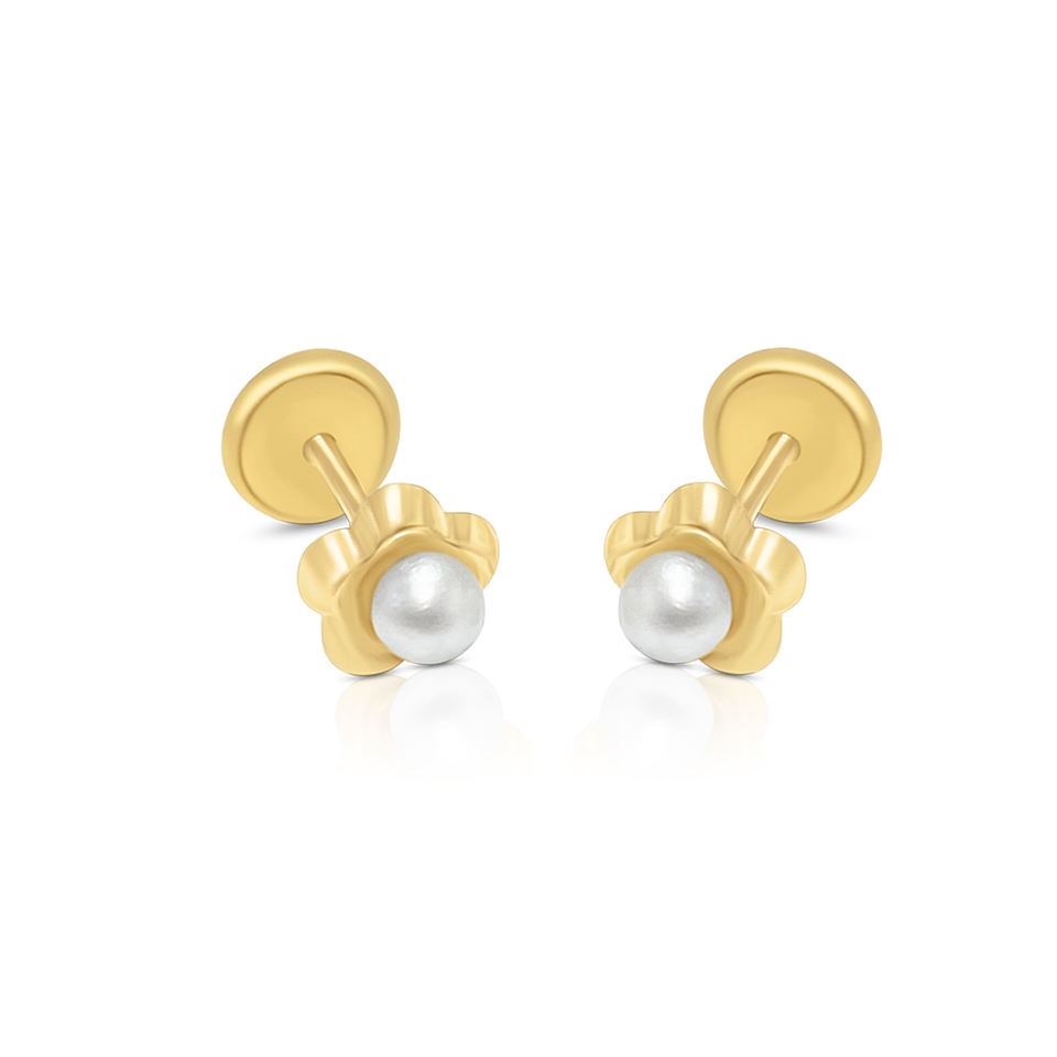 Elegante Flor de Oro Bazel Pendientes de perlas Joyas de perlas naturales