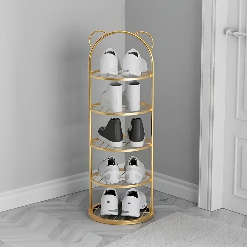 Elegante Zapatero Dorado de Tres Niveles, Organizador Compacto que Ahorra Espacio, Diseño Robusto, Solución Moderna de Almacenamiento para la Entrada