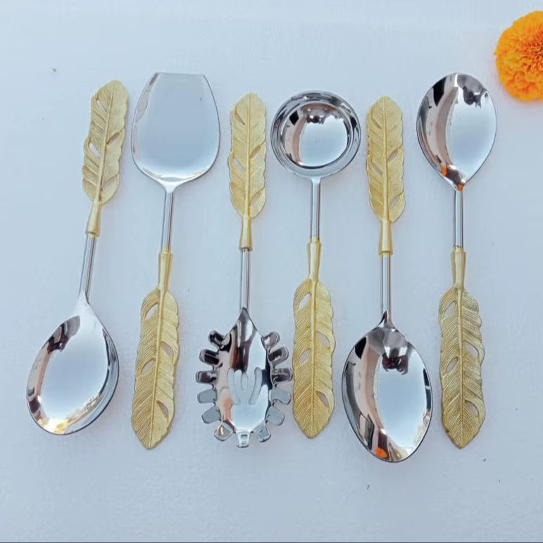 Elegante juego de cuchara con aspecto de pluma dorada para fiestas