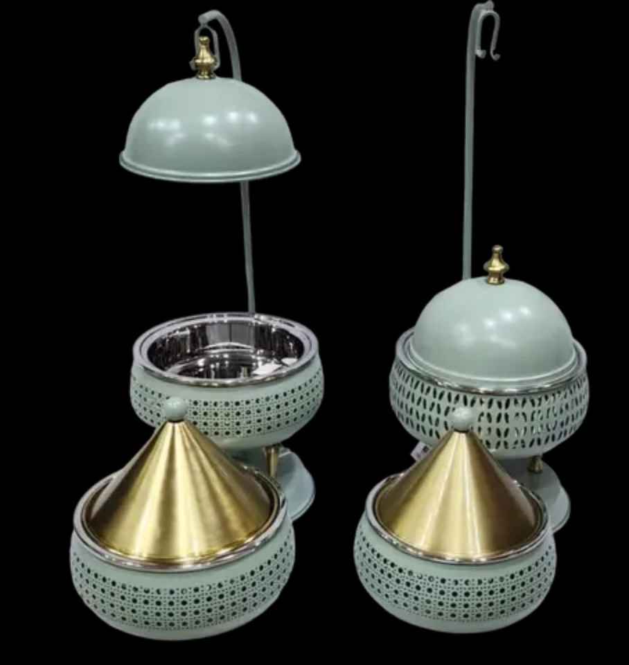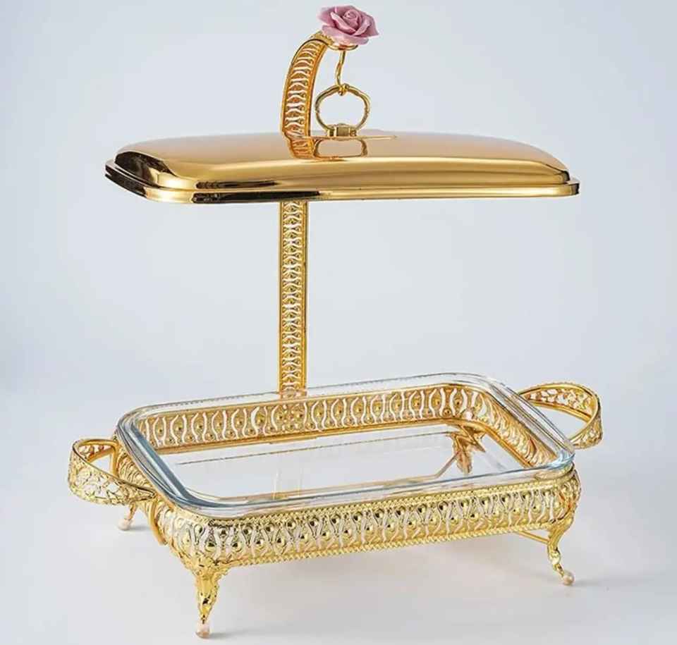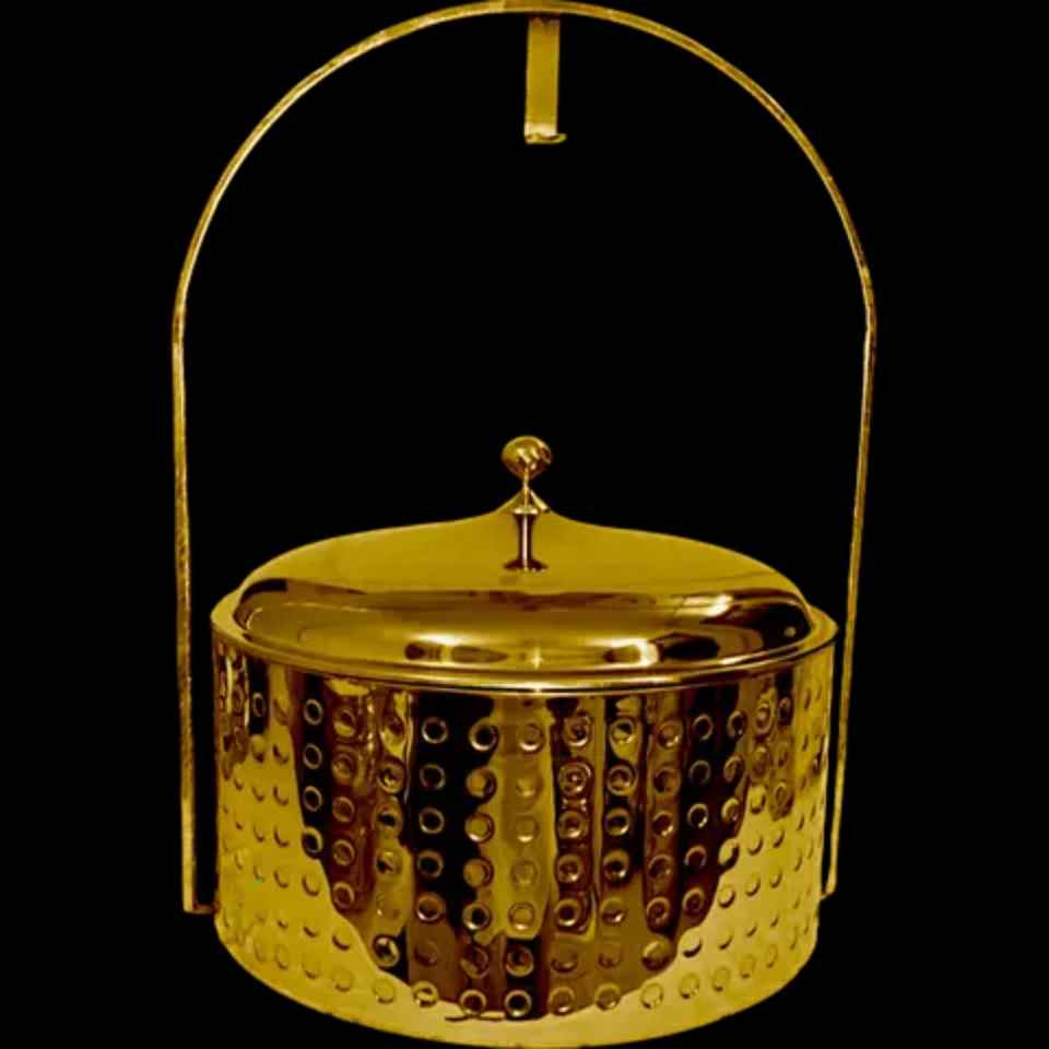 Elegante Cazuela Dorada Aislada con Diseño Martillado, Asa de Transporte Grande en Forma de Arco y Tapa Abombada, Olla de Lujo para Mantener la Comida Caliente para Servir en la Mesa
