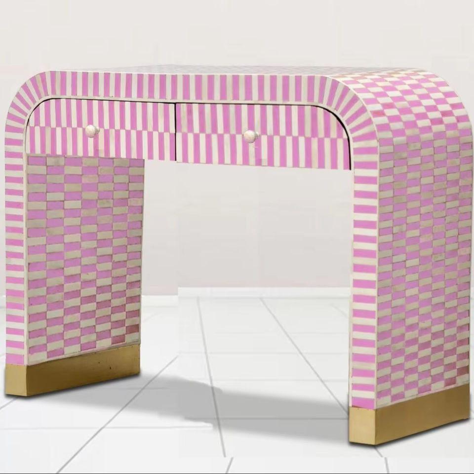 Elegante mesa de Consola de madera hecha a mano con muebles de decoración para el hogar únicos de latón-Gabinete con incrustaciones de hueso para sala de estar al mejor precio