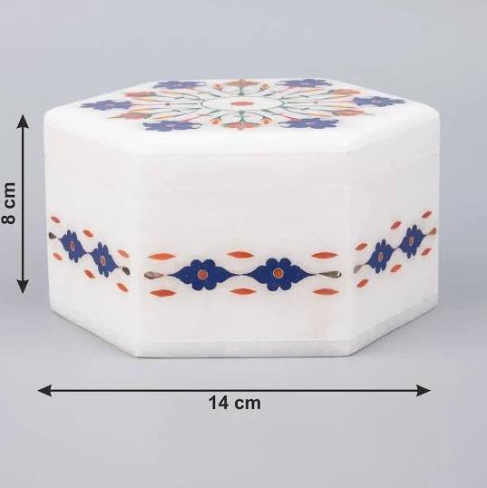 Nombre del producto:Caja de joyería de mármol artesanal con trabajo de incrustaciones de latón