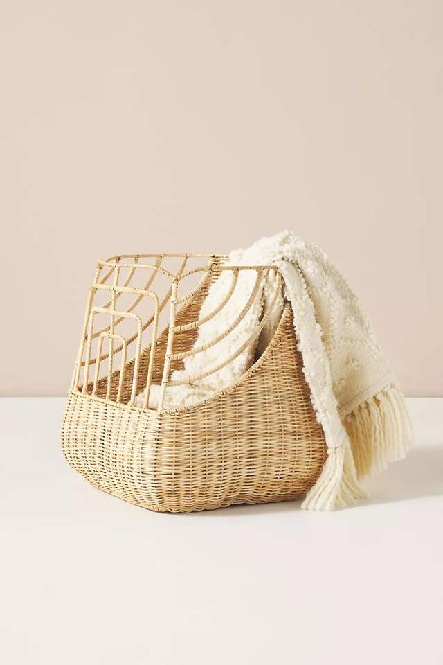 Elegante cesta de ratán hecha a mano para guardar libros, juguetes o artículos de despensa con un aspecto atemporal y naturalmente hermoso