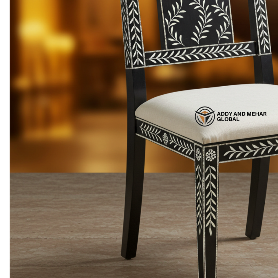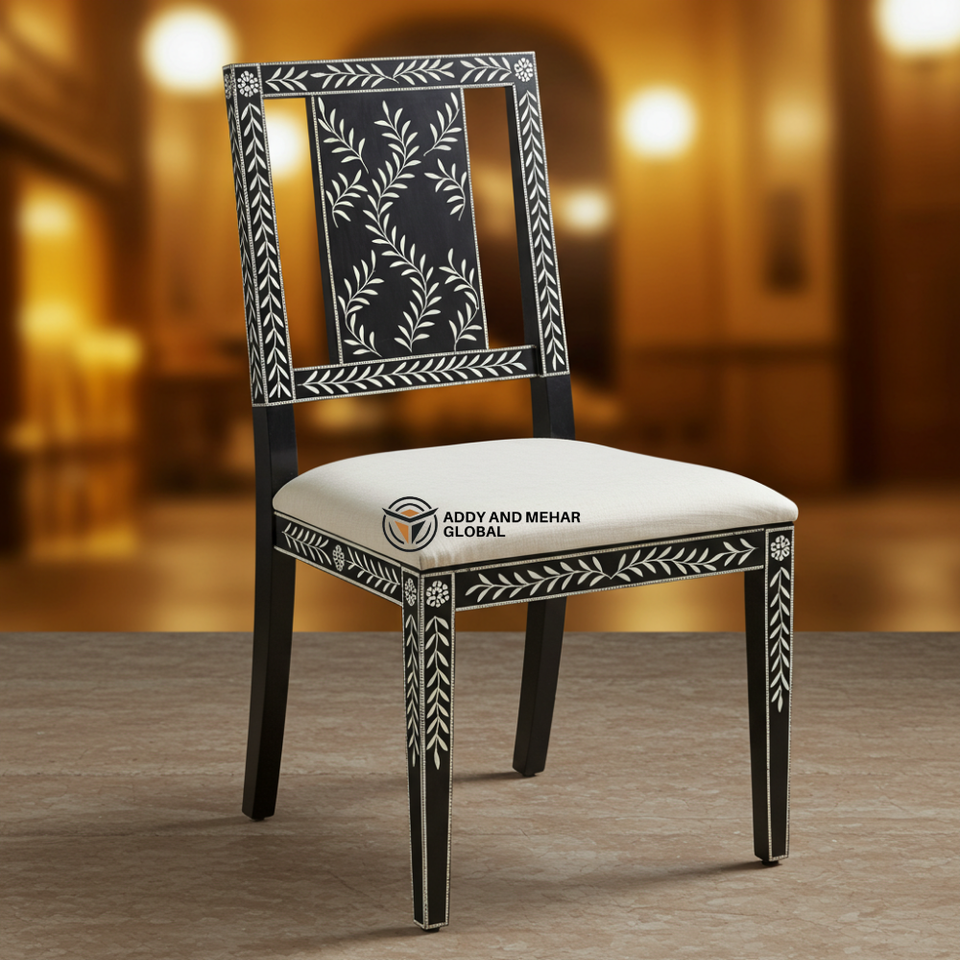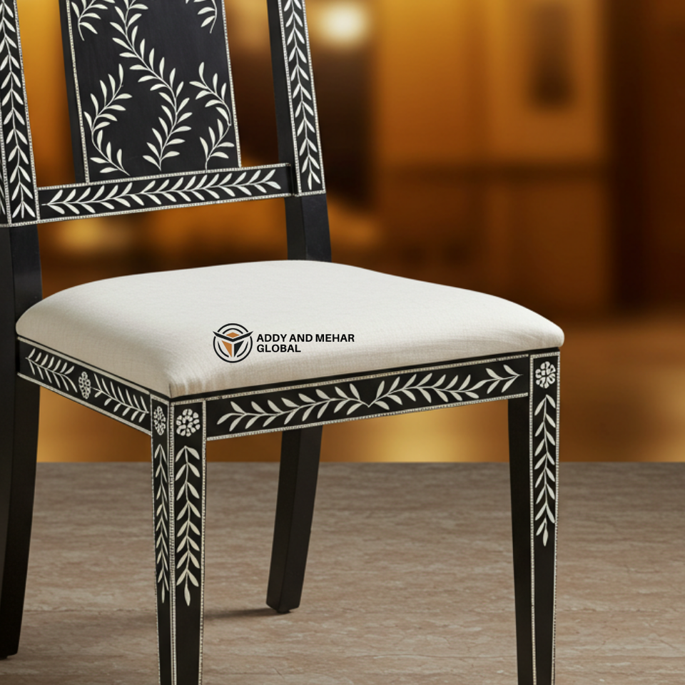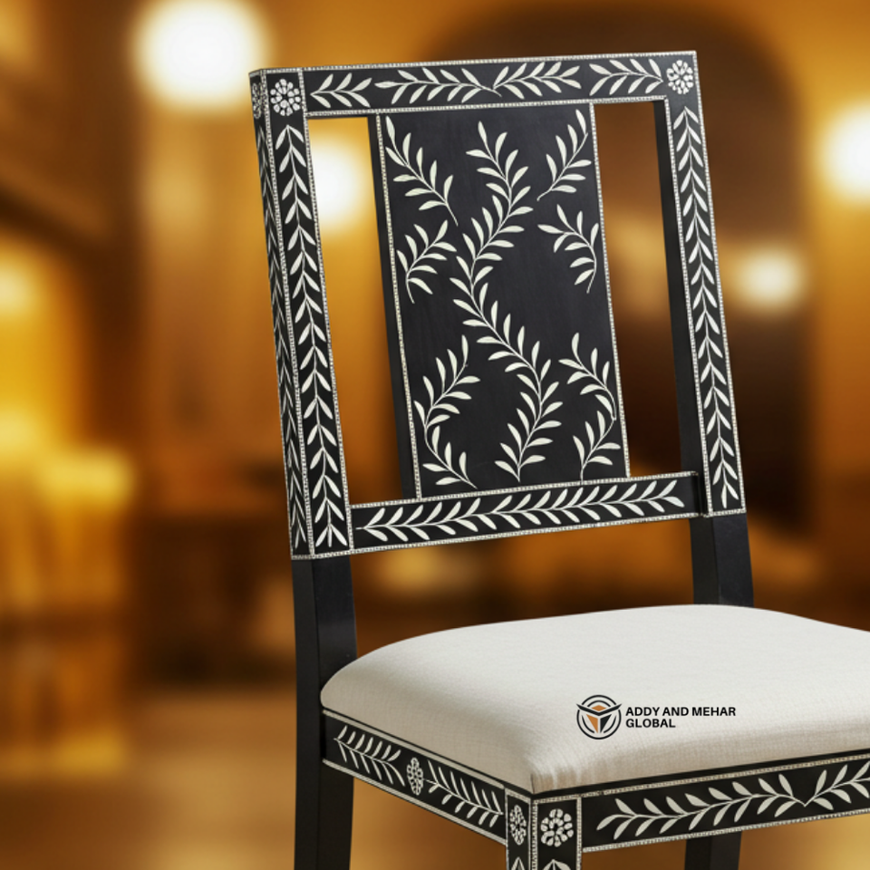 Elegante Silla de Comedor Floral con Incrustaciones de Hueso Hecha a Mano, Asiento Decorativo de Madera para Sala de Estar y Comedor, Incrustaciones de Lujo