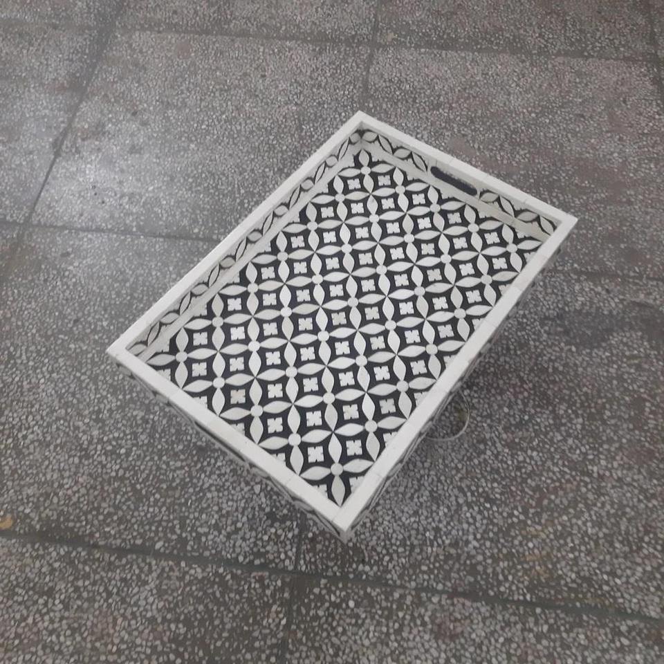 Elegante Bandeja Hecha a Mano con Incrustaciones de Hueso para Servir, Decoración del Hogar, Regalo Ecológico Premium