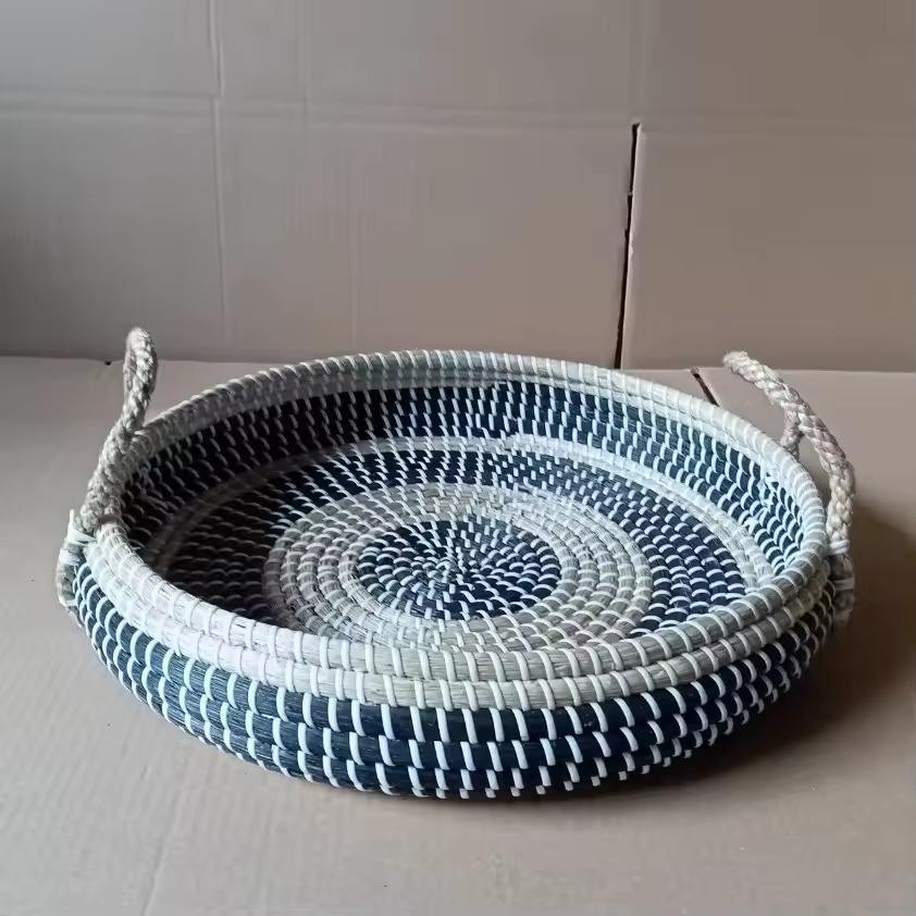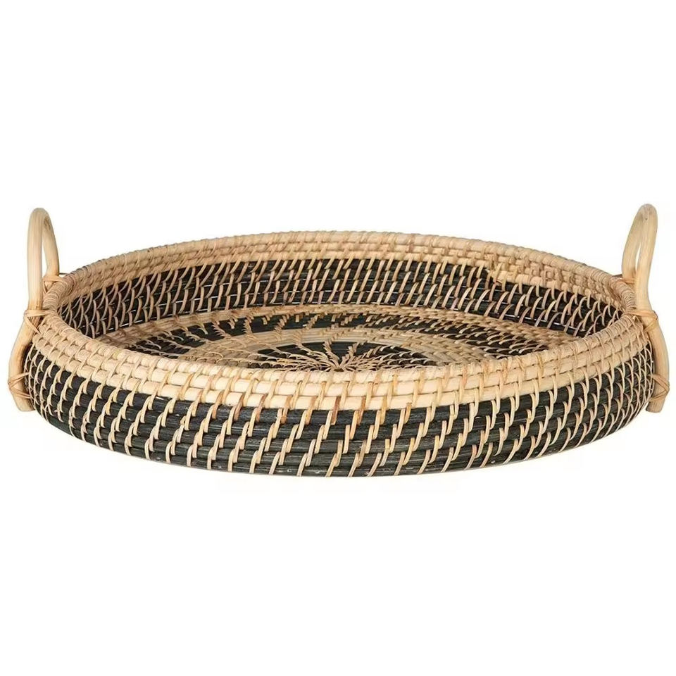 Elegant Handmade Round Natural Rattan Serving Tray with HandlesProduct Name