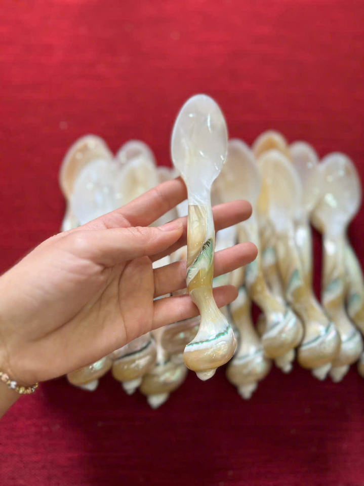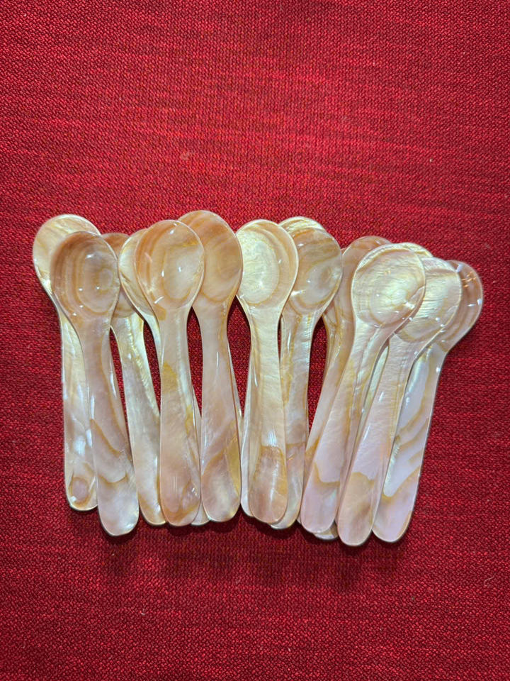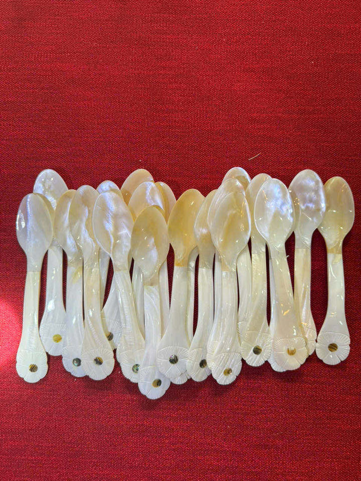 Elegante juego de cucharas hechas a mano: cuchara de nácar natural para cenar, cuchara de nácar de lujo sostenible