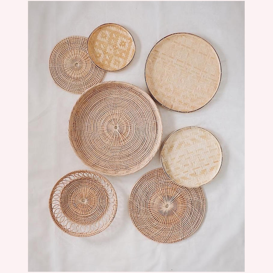 Elegante pieza de arte de alta gama con diseño de pared de ratán y algas marinas tejidas a mano para interiores elegantes y de moda