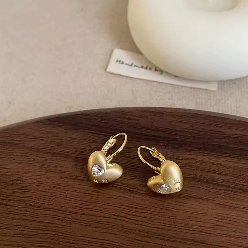Elegante Pendiente de Oreja con Incrustaciones de Diamantes de Imitación en Forma de Corazón para Mujer, Exquisito Pendiente Colgante, Joyería de Temperamento