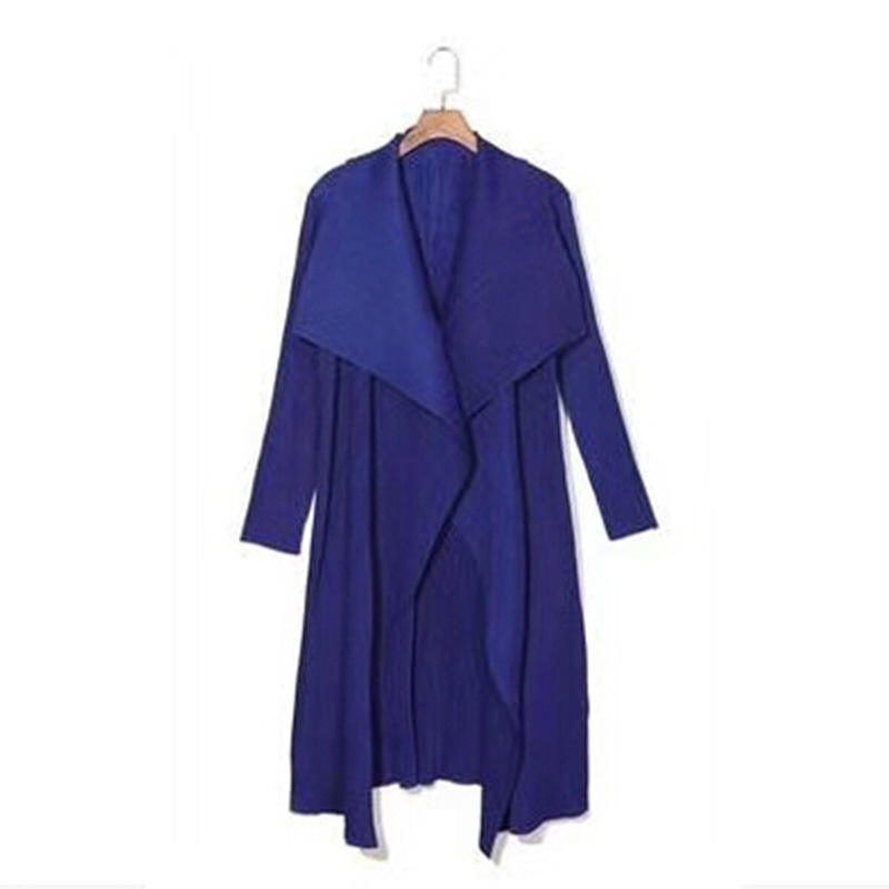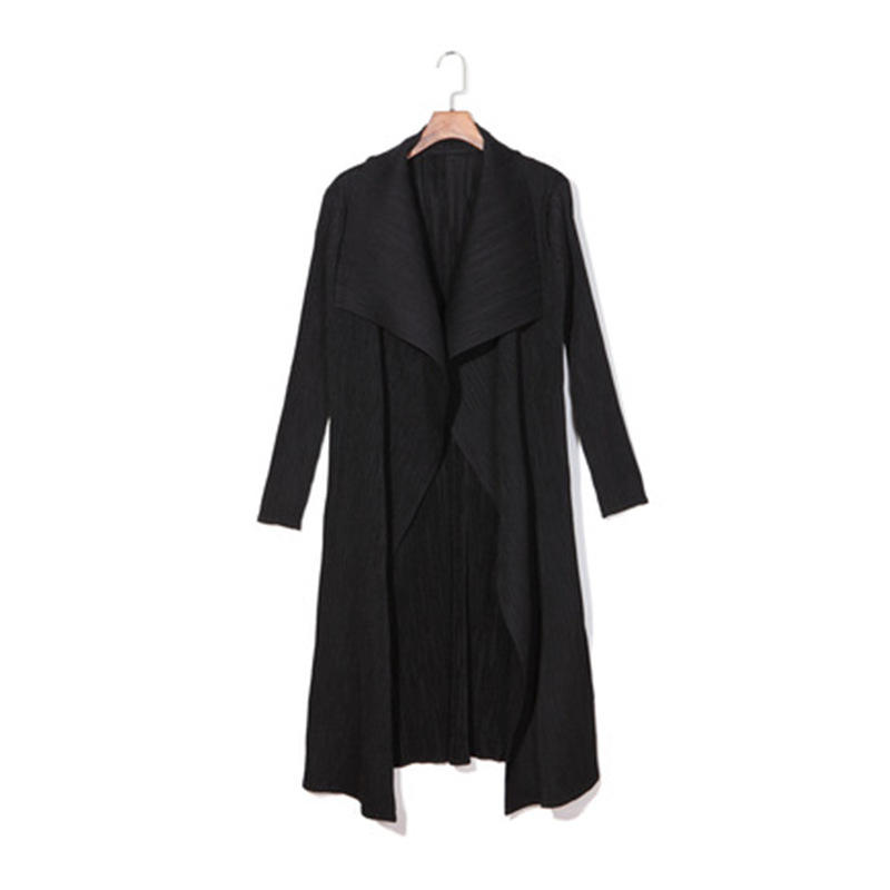 Elegante Abrigo Largo Negro Holgado con Diseño Plisado, Ecológico, Antiarrugas, Estilo Urbano, Gabardina para Mujer, Proveedor Confiable, En Stock