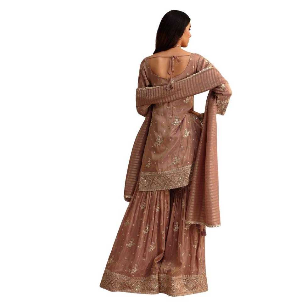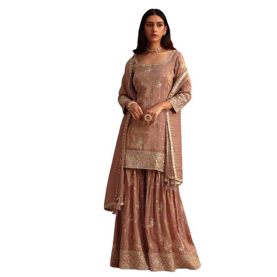 Elegante Conjunto de Kurta Sharara de Seda Color Lavanda Claro con Lentejuelas y Adornos Cutdana para Bodas, Fiestas y Celebraciones Festivas