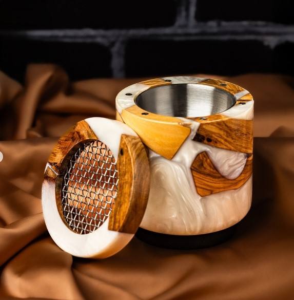Elegante Quemador de Incienso Lila Mate, Red de Madera y Metal, Quemador Mubkhar para Uso Aromático