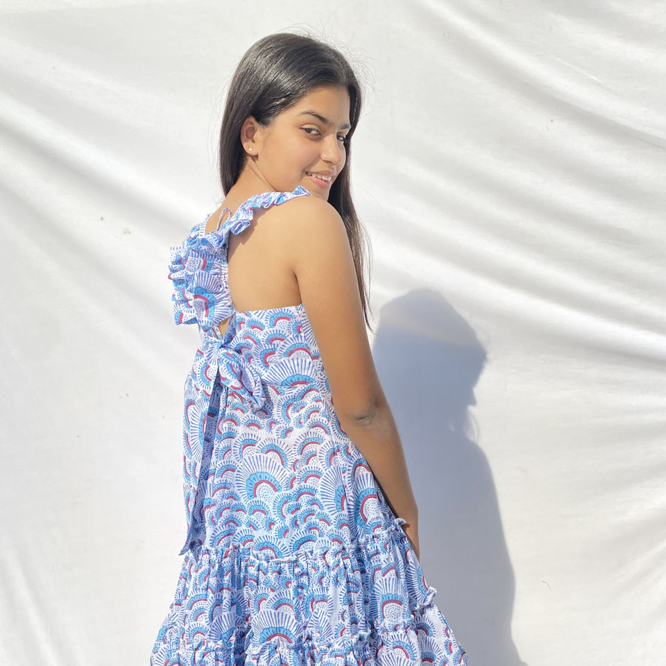 Vestidos estampados en color azul personalizados de aspecto elegante para verano y primavera Vestidos largos cortos informales Artículos al por mayor