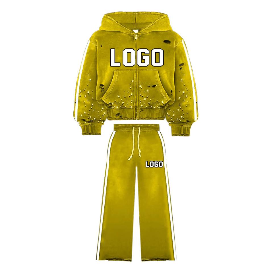 Product name:Customized Men Distressed Rhinestone Tracksuits