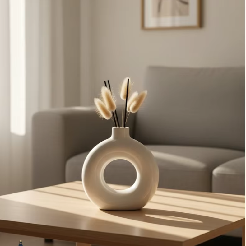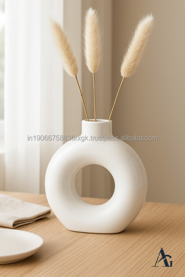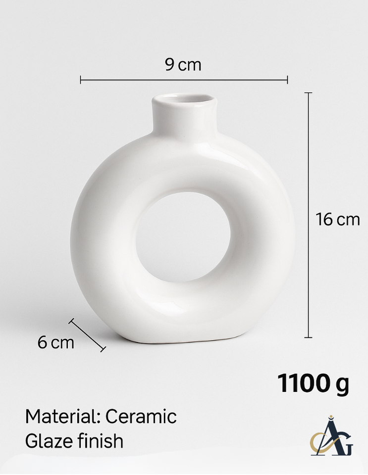Jarrón de Cerámica Blanco Brillante Moderno y Elegante de AG Elements, Hecho a Mano, Ecológico, Resistente a los Arañazos, para Aniversario, Flores Secas