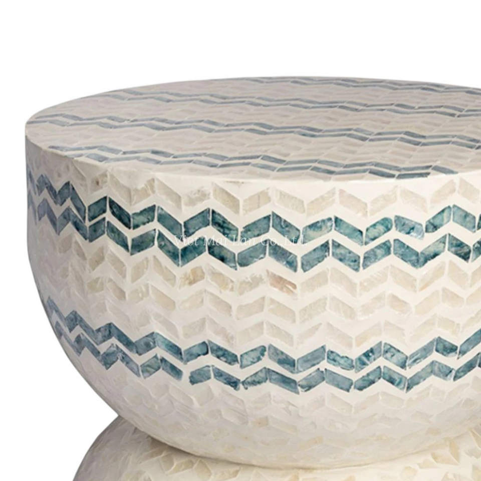 Elegante Mesa de Centro de Nácar, Mueble con Incrustaciones de Concha Hecho a Mano para Espacios de Vida Refinados