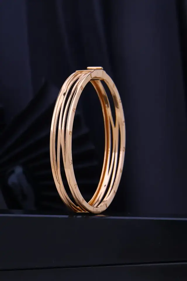 Brazalete de lujo de oro rosa de 18k con múltiples hilos para mujer, elegante joya de diseño, regalo de aniversario de bodas para ella.