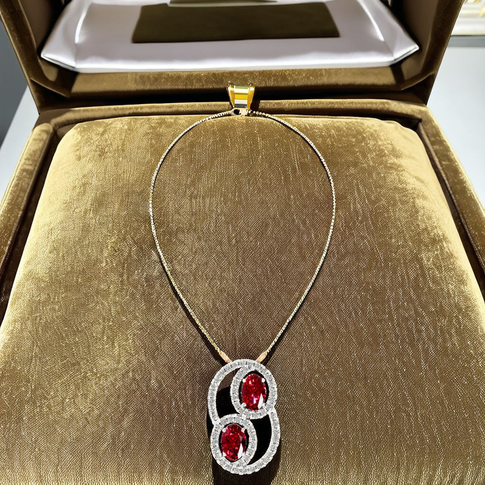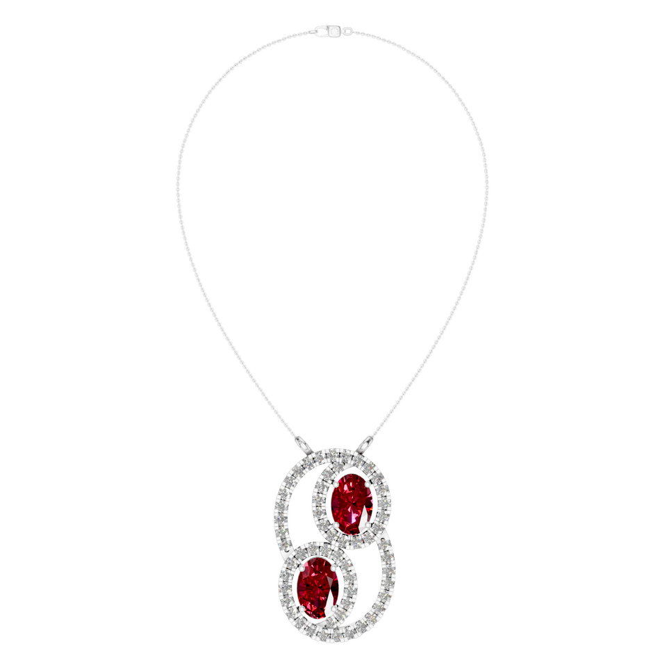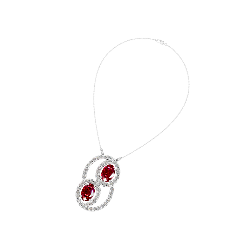 Estilo:Colgante de piedra preciosa de rubí de corte ovalado con halo en espiral