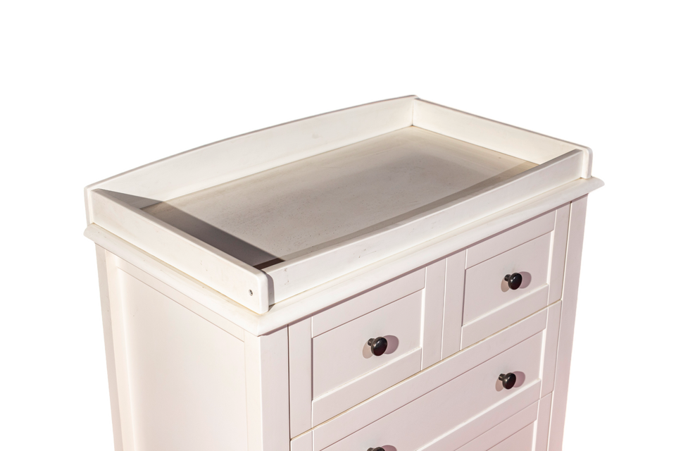 Elegante armario de dormitorio moderno con 4 cajones de madera de caucho macizo acabado pintado en blanco colección de tocadores modulares