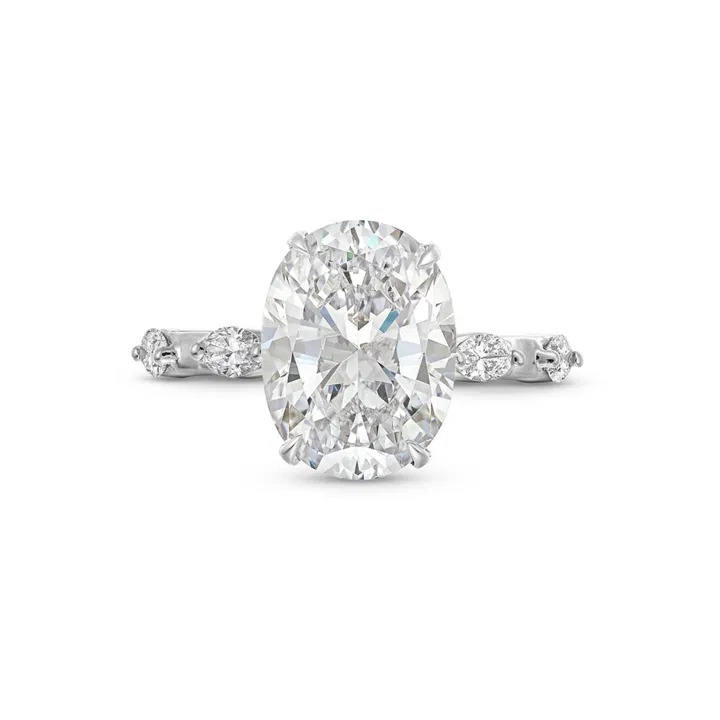 Elegante anillo de compromiso de diamante de laboratorio de forma ovalada Halo oculto Half Eternity 14K 18K oro nupcial anillo conjunto de puntas para mujer-DS0519