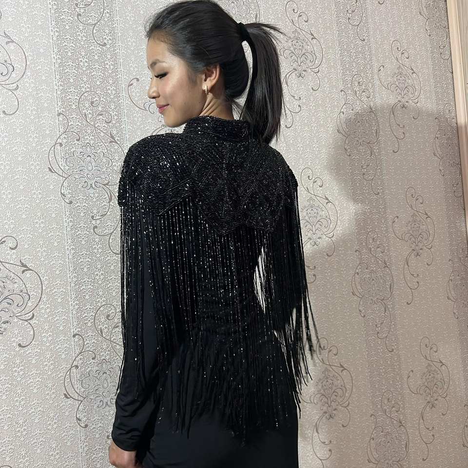 Elegante Vestido de Fiesta Vintage de Satén con Encaje y Cuentas, Intrincado Trabajo de Cristal Hecho a Mano, Mangas Cortas, Cuello con Lazo, Estilo Poncho, Largo Maxi