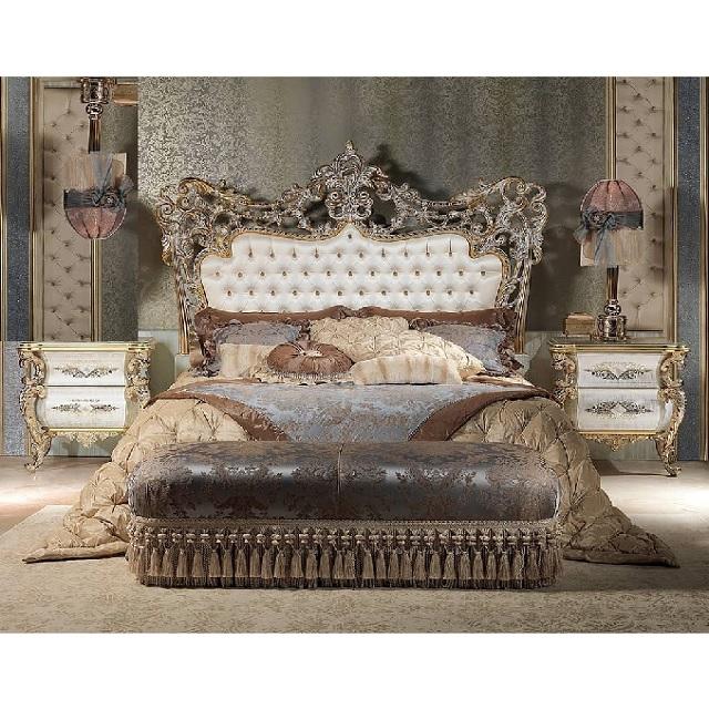 Elegant Queen Size Silver Carved Bed With NightstandsProduct name