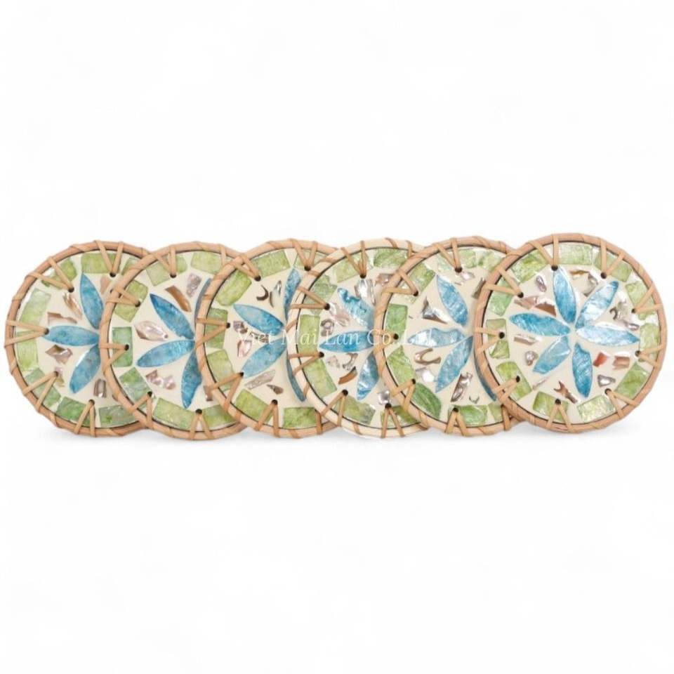 Elegante Posavasos de Ratán con Diseño de Madreperla para Protección de Café y Té y Decoración Natural de Mesa