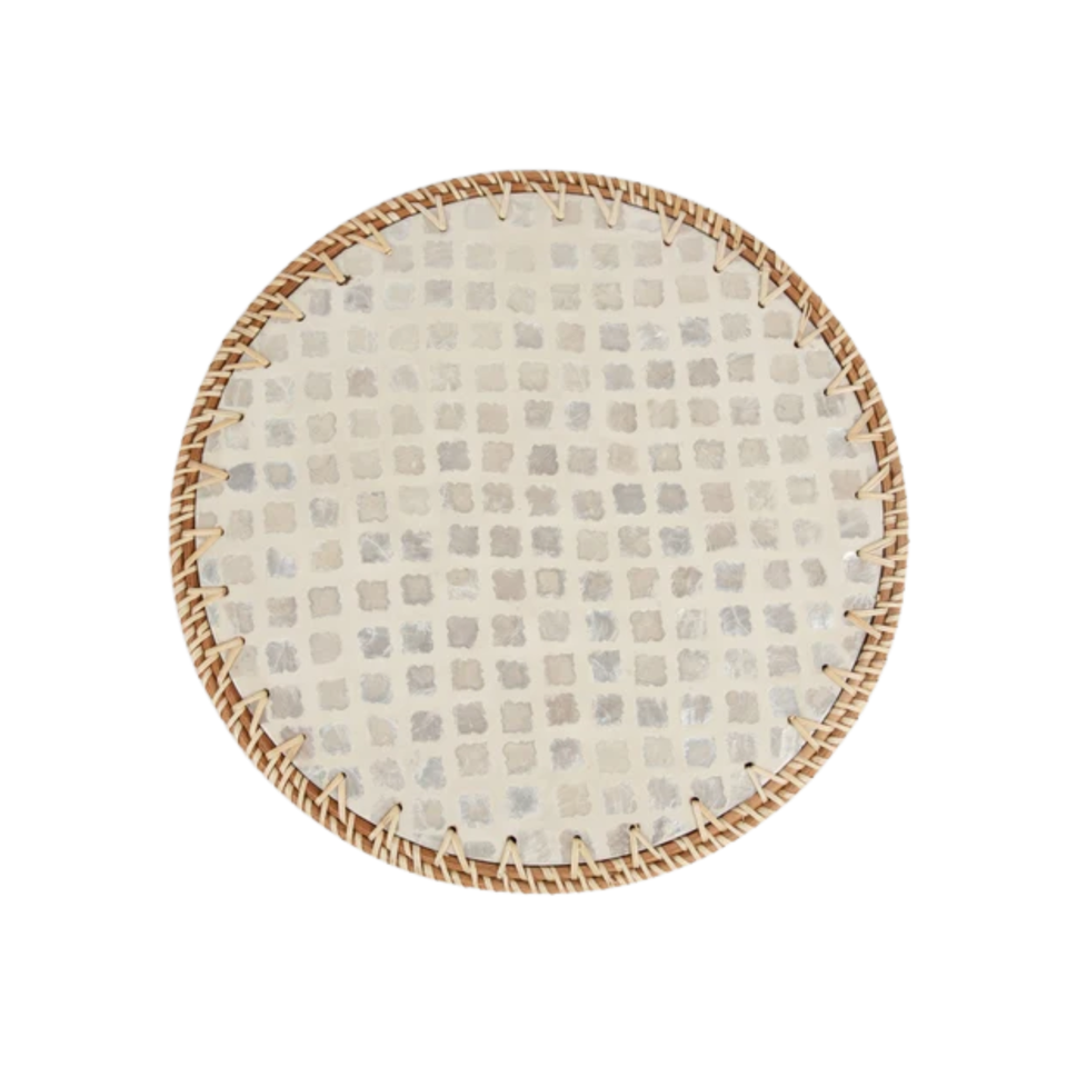 Nombre del producto:Elegante ratán borde floral madre perla embutido servir bandeja