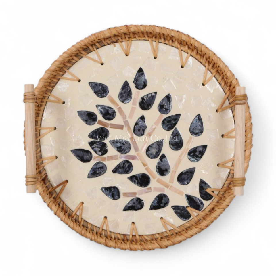 Elegante Bandeja de Ratán con Madreperla, Venta al por Mayor, Suministro de Vajilla para Catering, Hoteles y Restaurantes
