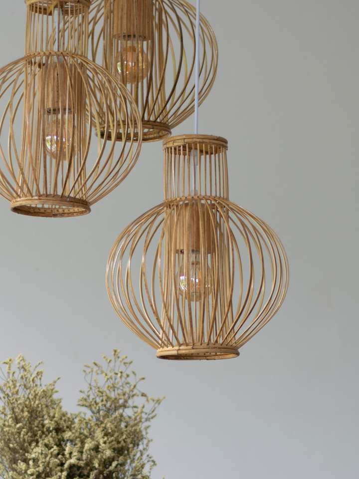 Elegante Lámpara Colgante de Ratán, Pantalla de Madera Tejida Rústica Natural, Lámpara de Techo Colgante, Proveedor OEM Vietnam