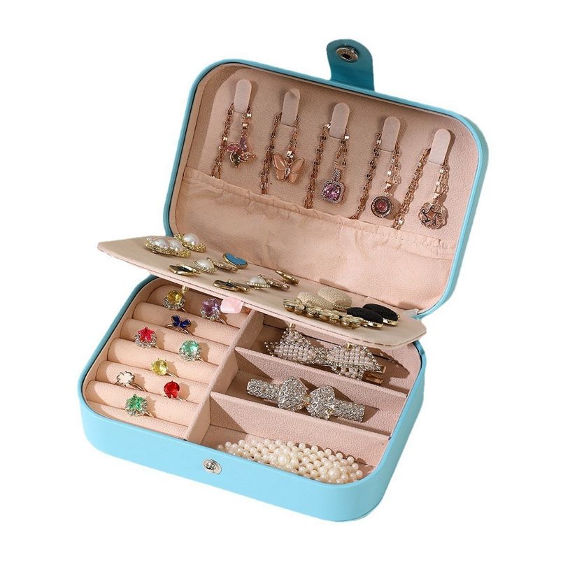 Elegante Estuche de Viaje Rectangular para Joyas, de Cuero PU Negro, con Cierre y Espejo