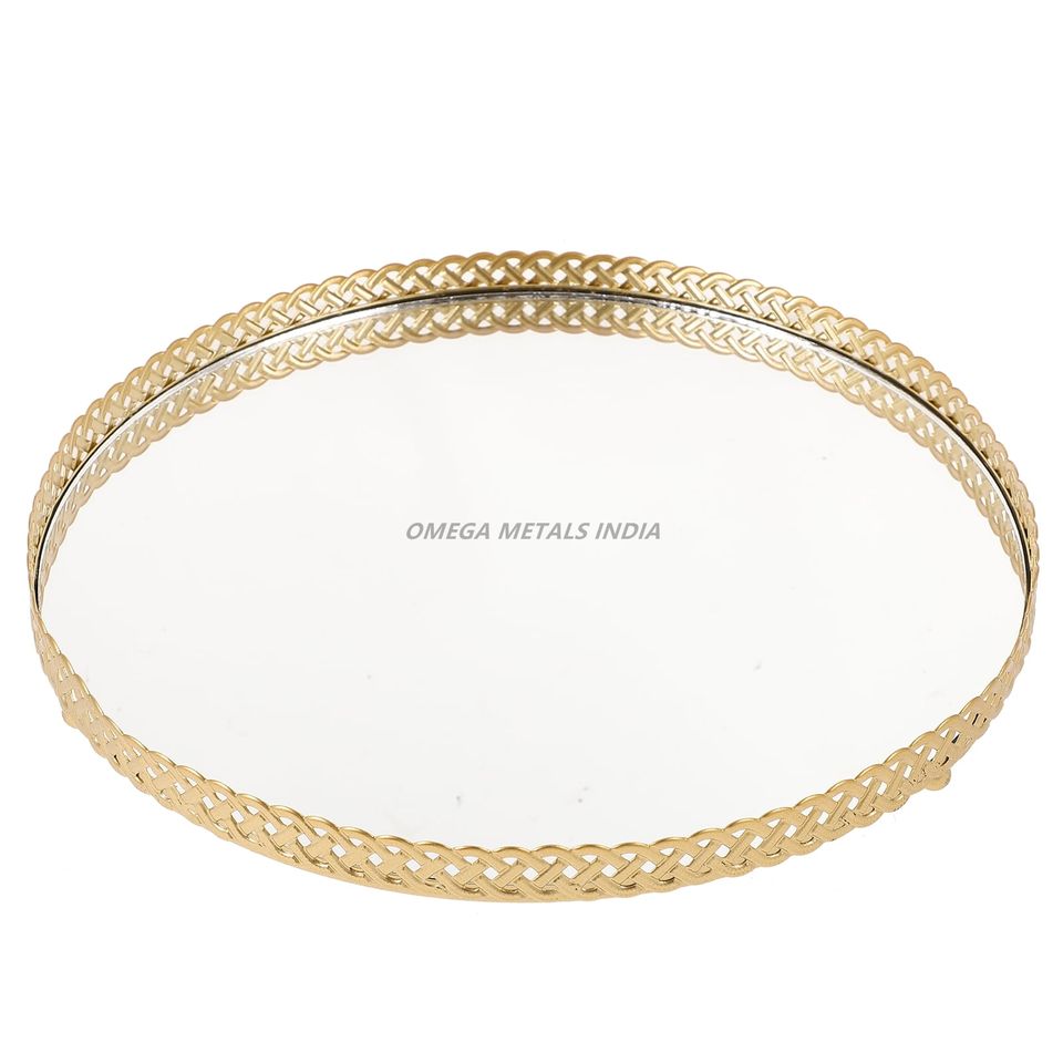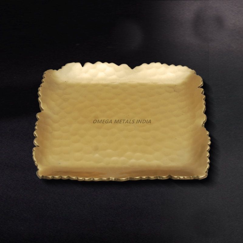 Bandeja de Servicio Dorada de Grado Alimenticio con Superficie Texturizada y Bordes Festoneados, Ideal para Servir con Estilo y Decorar