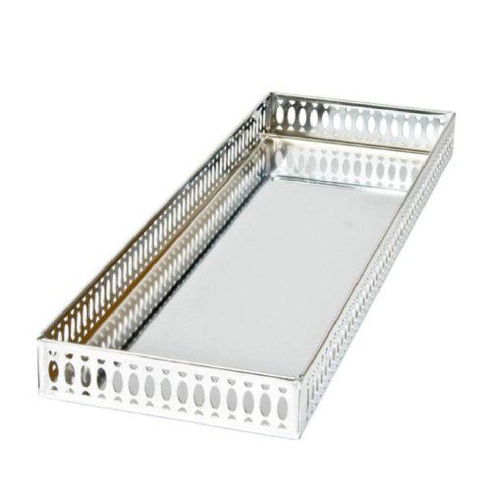 Elegante Bandeja Rectangular Plateada con Espejo, Bandeja Decorativa de Metal Niquelado con Asas, Organizador de Decoración para el Hogar en Oferta