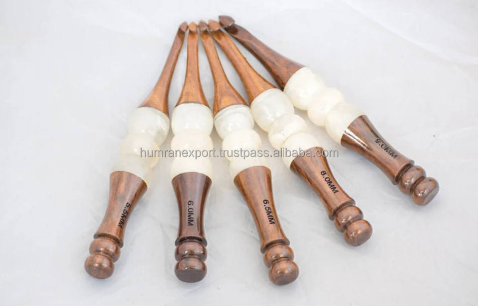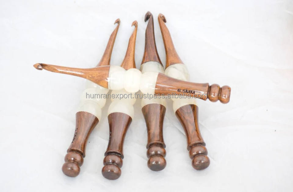 Elegante gancho de ganchillo de resina y madera, agujas de coser de palisandro y resina para ganchillo cómodo