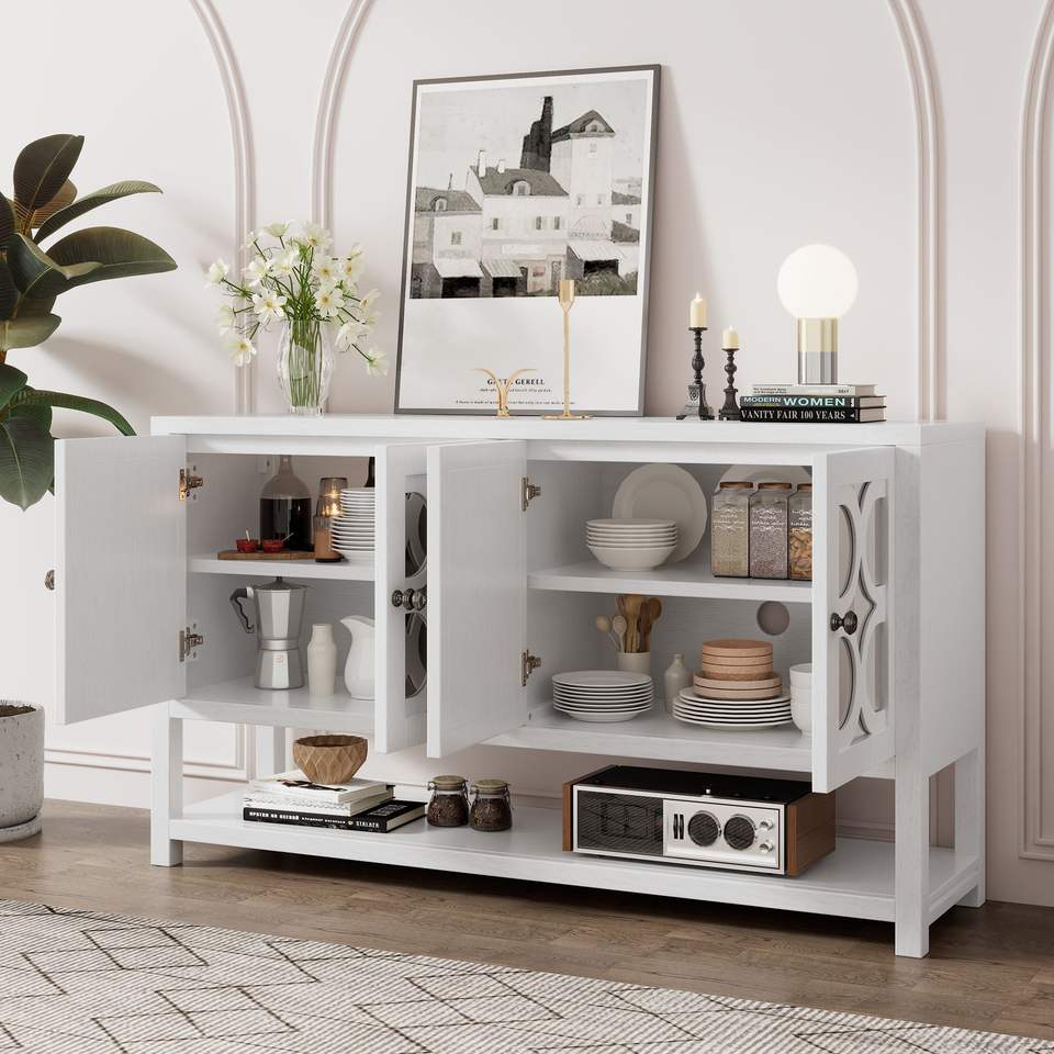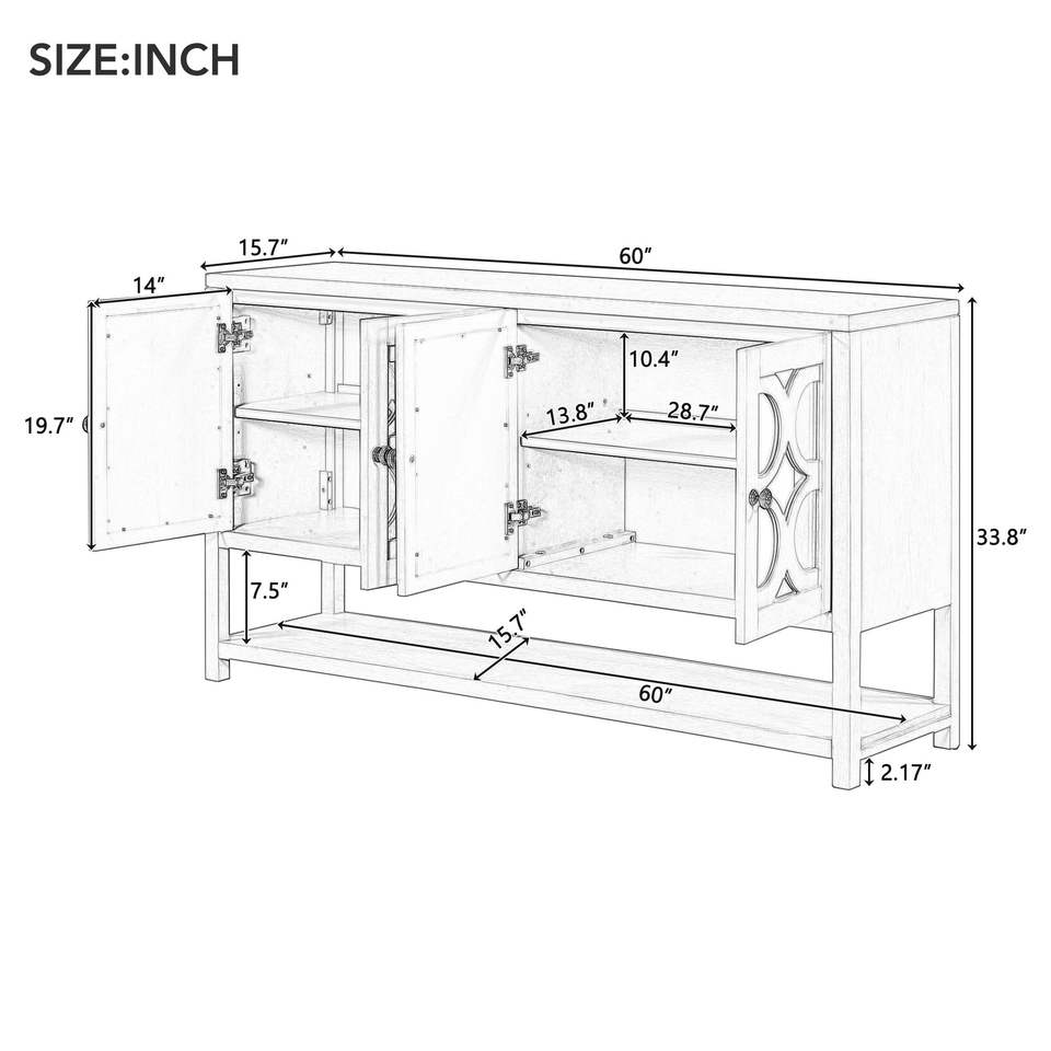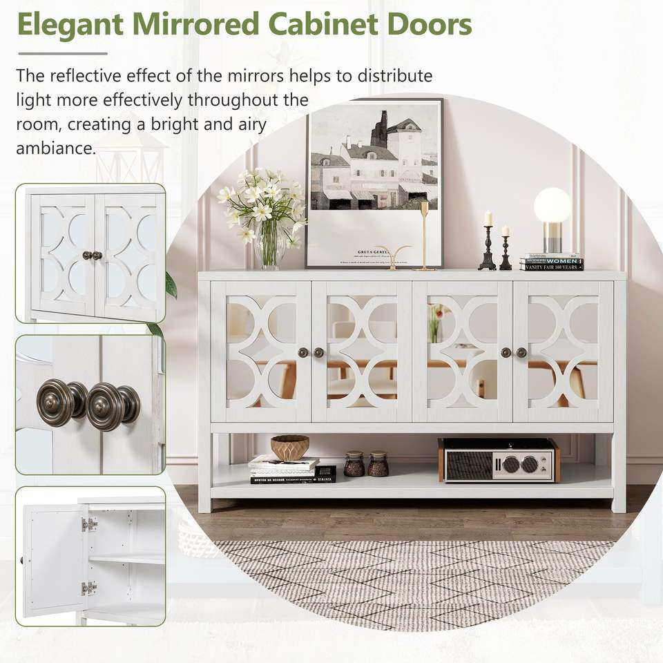 Elegante Mesa Consola Retro con Amplios Estantes, Patas de Madera de Acacia Resistentes, Puertas con Espejo, Mueble de Almacenamiento/Aparador para el Hogar