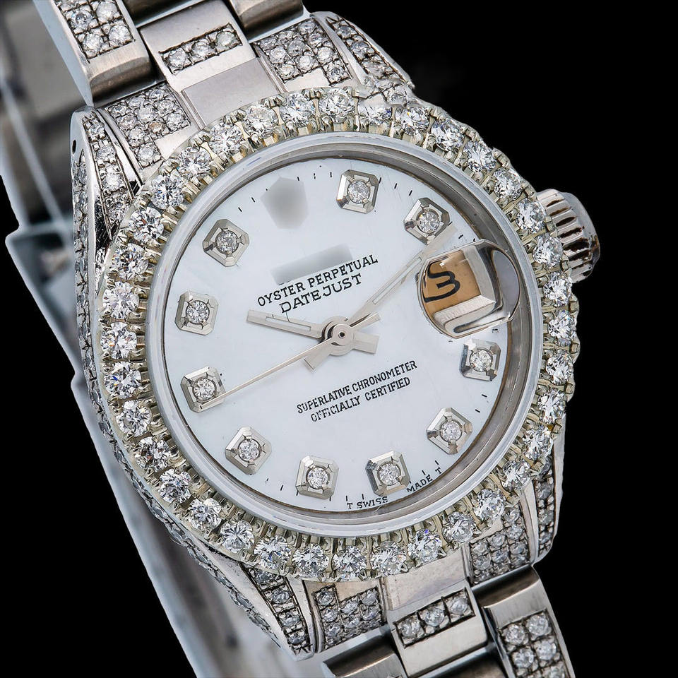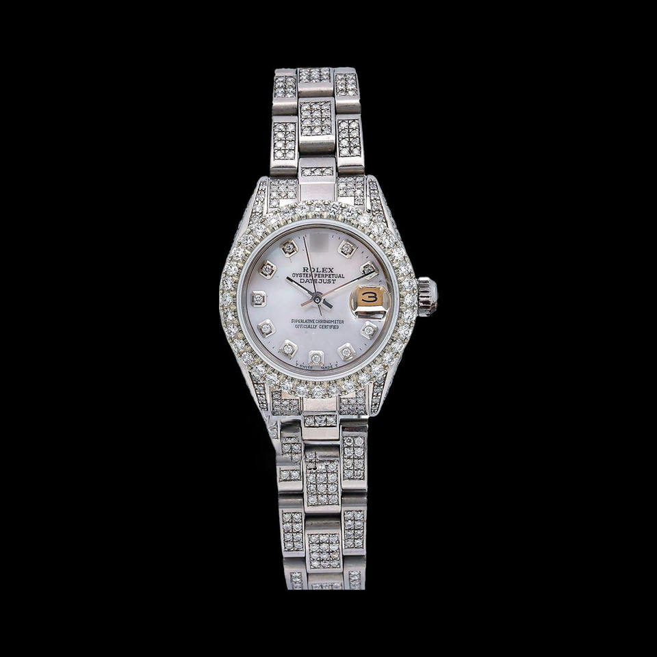 Elegante reloj de Hip Hop con esfera blanca romana completamente helada con moissanita de banda de acero inoxidable para movimiento automático suizo