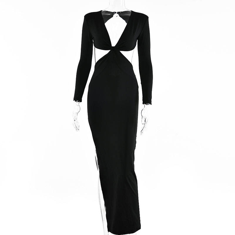 Vestido Midi fruncido con hombros descubiertos para mujer, vestido Sexy de manga larga con espalda descubierta y abertura lateral para fiesta y Noche