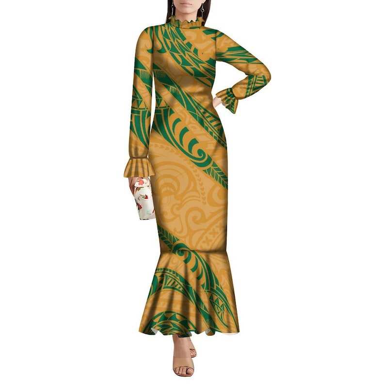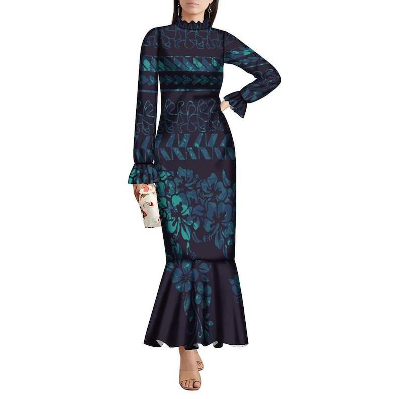 Elegante Vestido de Noche Estilo Samoa con Diseño de Doble Manga, Vestido Formal Tongan Puletasi Personalizado