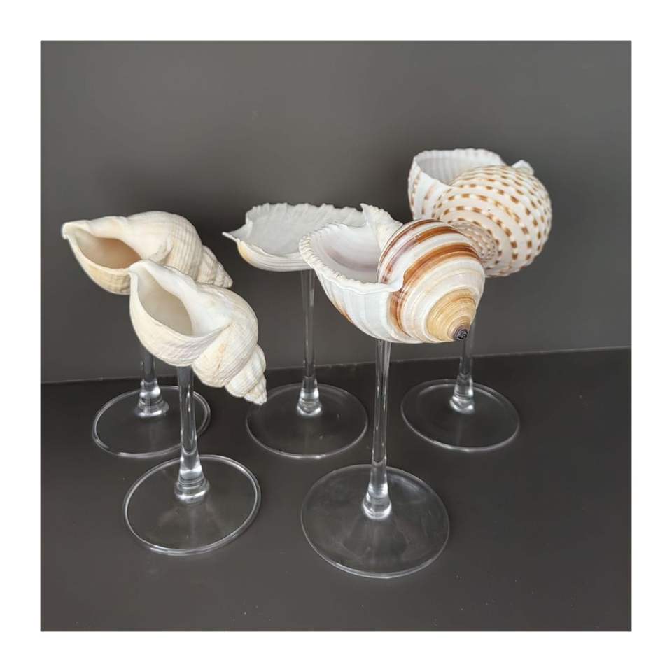 Elegantes copas de vino de concha marina con acabado brillante y diseño inspirado en el océano para cenas y regalos únicos