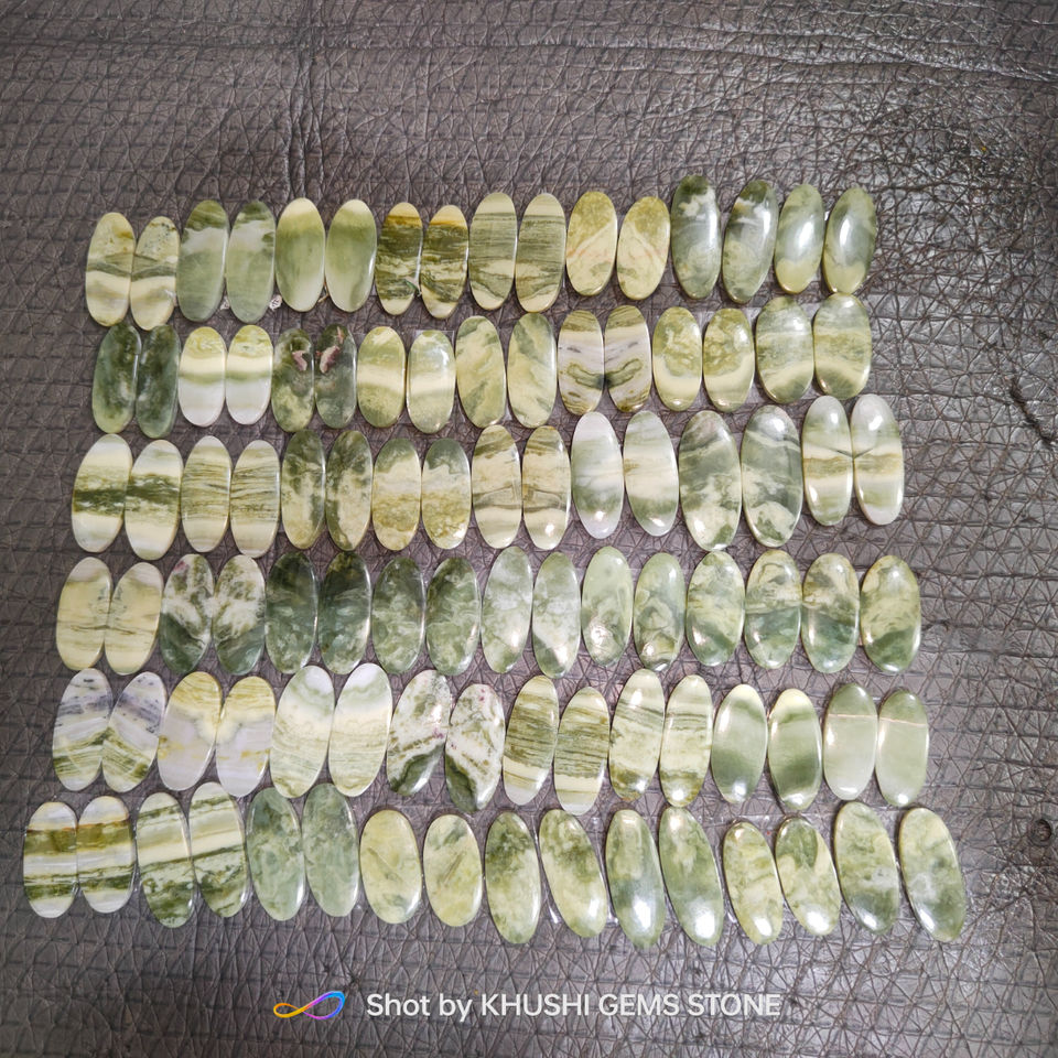 Par de Cabujones de Serpentina Natural Elegante, Piedras Preciosas Sueltas, Lisas, Hechas a Mano para la Fabricación de Joyas, Accesorios de la India, 20-45 mm, 6-10 g