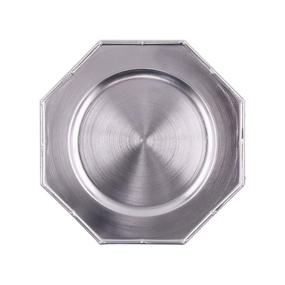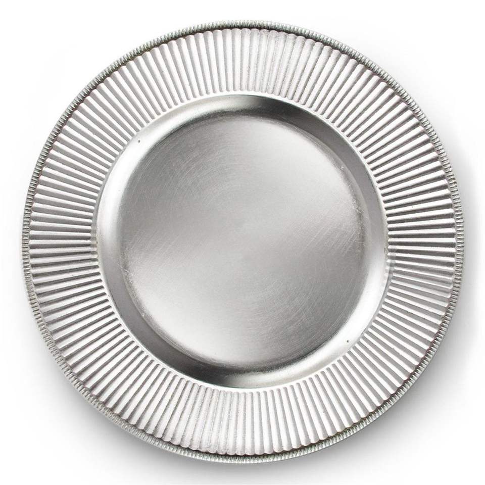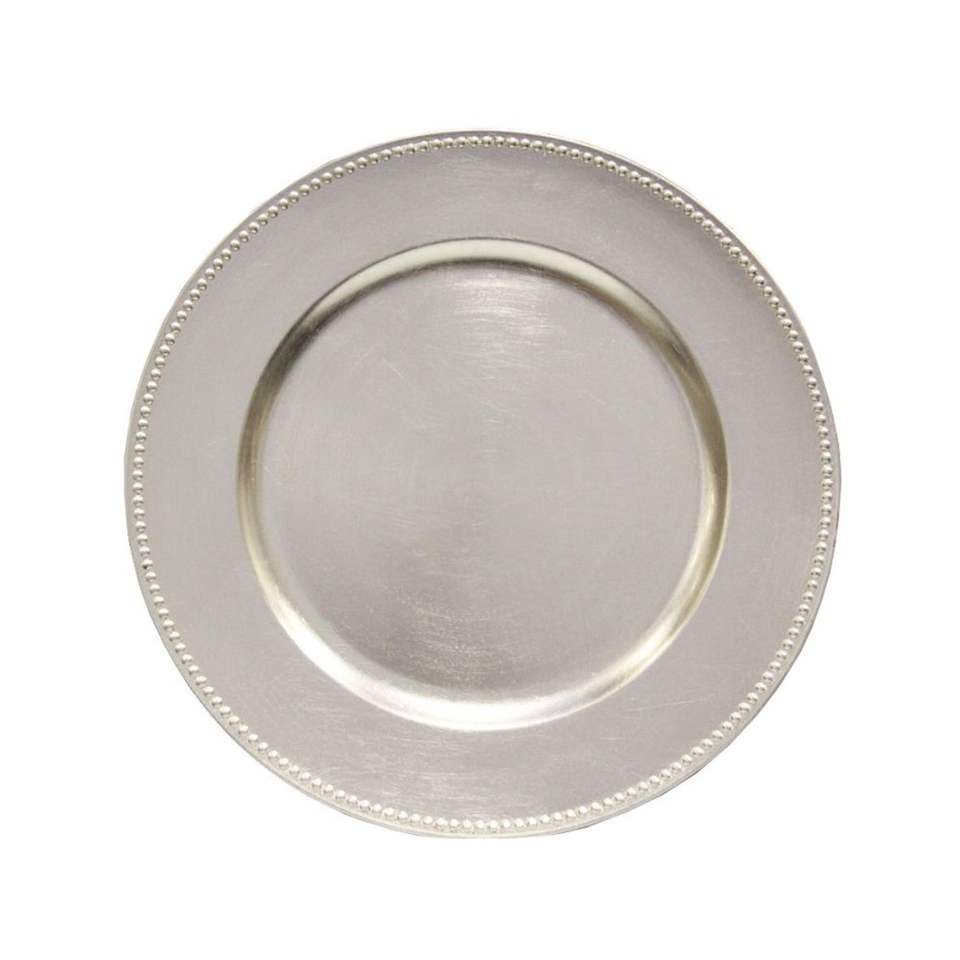 Elegante Plato de Presentación con Borde de Cuentas Plateadas, Bandeja de Servicio de Metal Antiguo para Decoración de Eventos y Bodas, Vajilla de Lujo de 13 Pulgadas