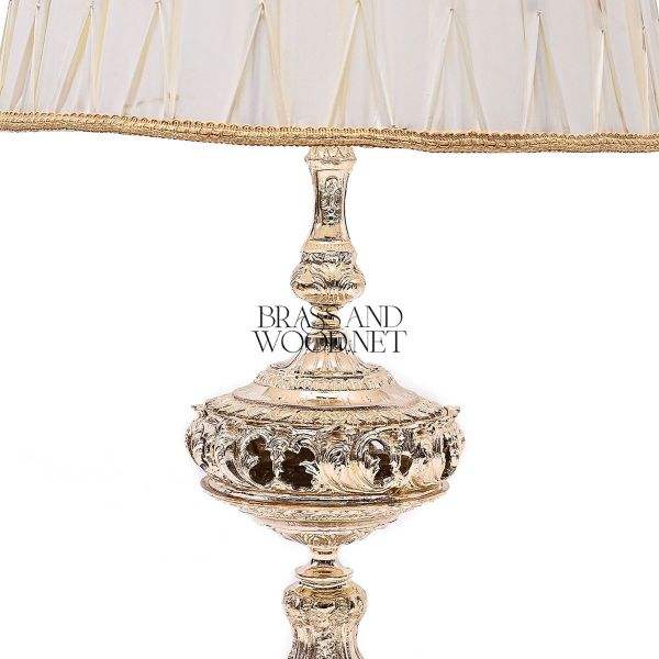Elegante lámpara de mesa de latón plateado con pantalla plisada clásica Acento de iluminación decorativo hecho a mano de lujo