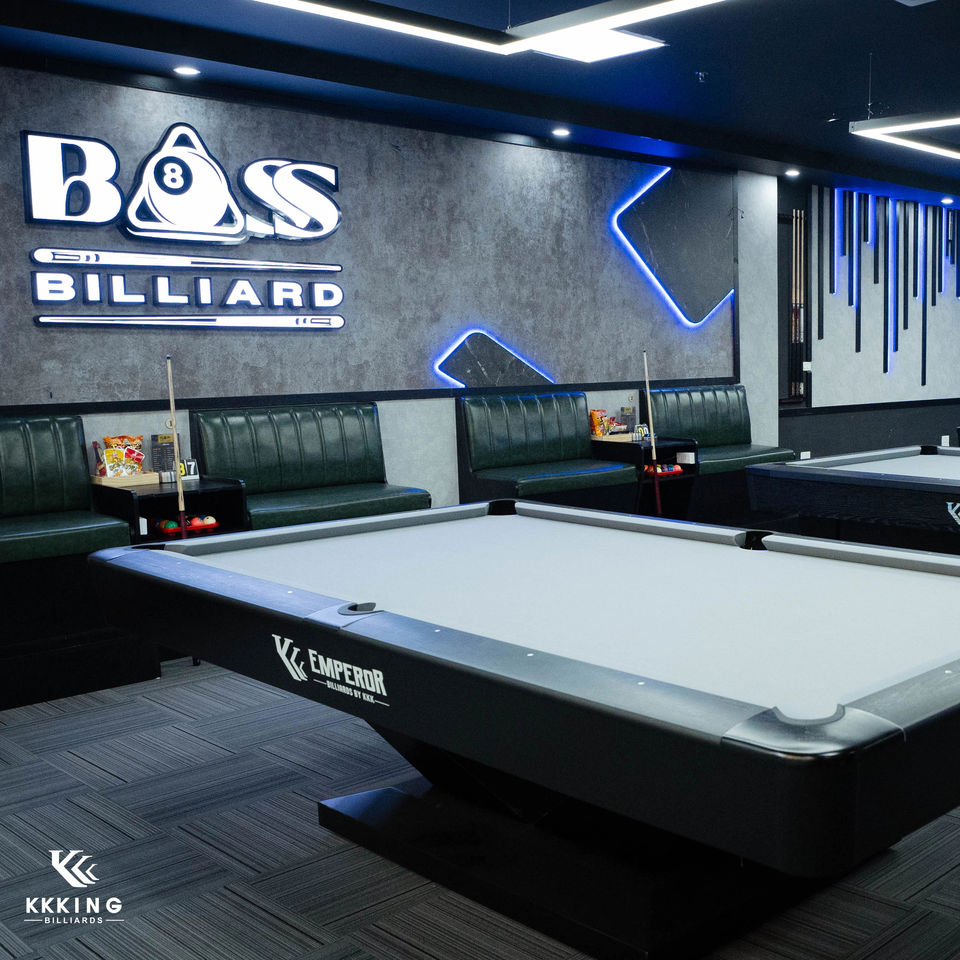 Elegante mesa de billar de listones con marco de madera diseñada para un juego estable y agradable